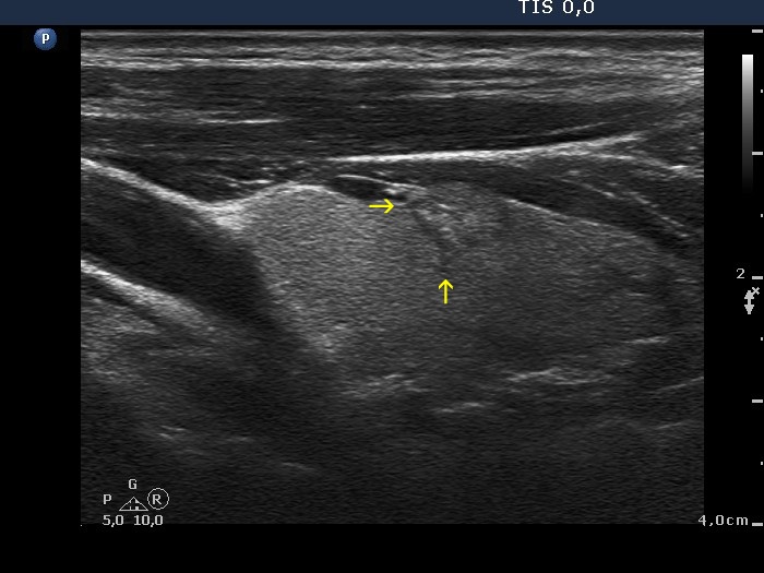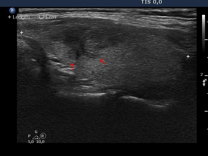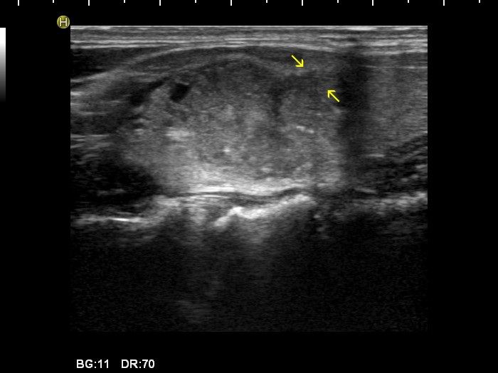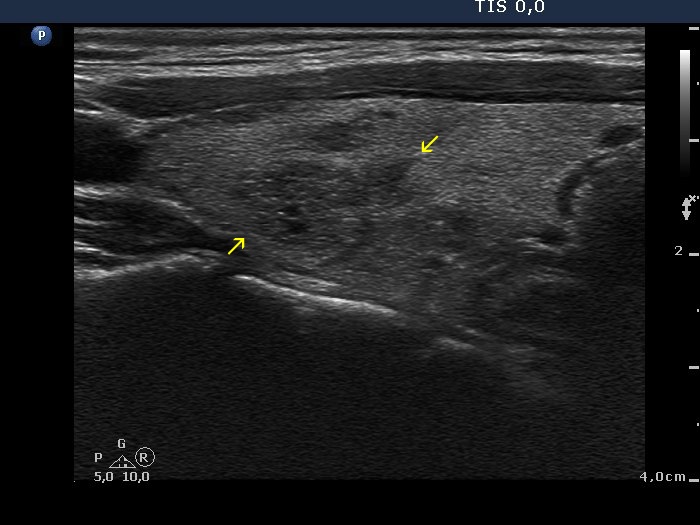 Spiculated margin belongs to the irregular borders which is encountered among suspicious signs of every TIRADS. This is characterized by the presence of projection having sharp angles. The distinction from lobulations is not always possible, but this has little if any relevance. Form a practical point-of-view, there are two issues. Firstly, there is no exact definition on which we can distinguish small irregularities on nodule surface without any clinical significance from pathognomonic spiculations. Secondly, one of the most typical presentations of Hashimoto's thyroiditis is the puzzle-like, spiculated borders of discrete hypoechogenic lesions.