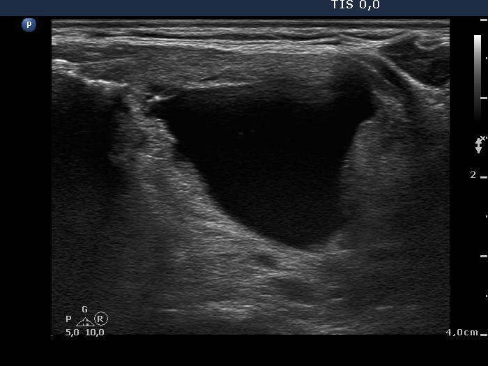 Isthmus, transverse view. This is the cystic part of the lesion.