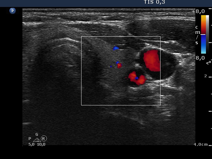 Functional state: subclinical hypothyroidism with TSH-level 4.92 mIU/L, FT4 13.7 pM/L. Erythrocyte sedimentation rate was 11 mm/H, CRP was 0,9 mg/L.