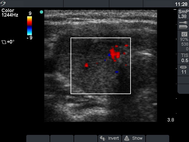 Ultrasonography: The pattern has become completely echonormal. There were no significant change in the vascularization.