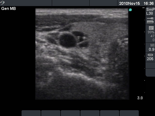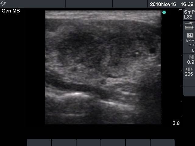 I think that this case is a very good example why the thyroidologist has to do ultrasonography and then perform the ultrasound examination him- or herself. This is the only way to avoid unnecessary surgery in ambiguous cases.