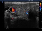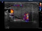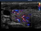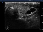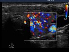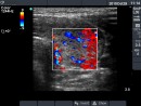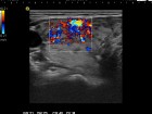 Ultrasonography: Both lobes were enlarged, moderately hypoechogenic, inhomogeneous and displayed increased vascularization.