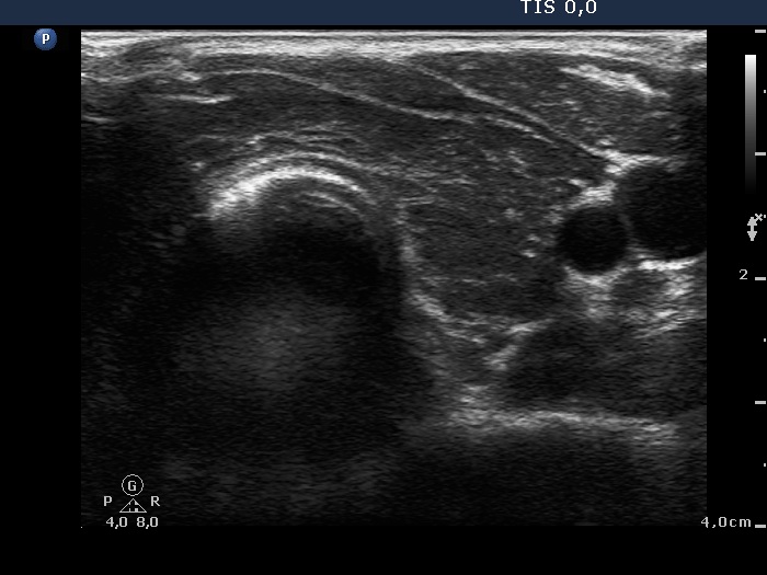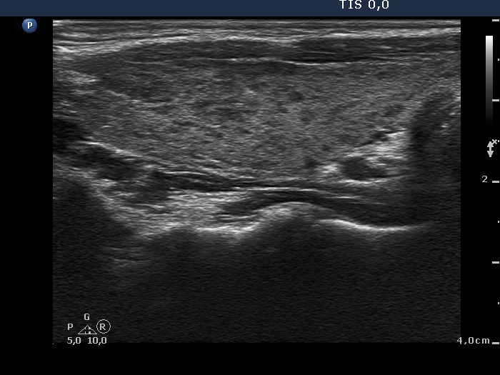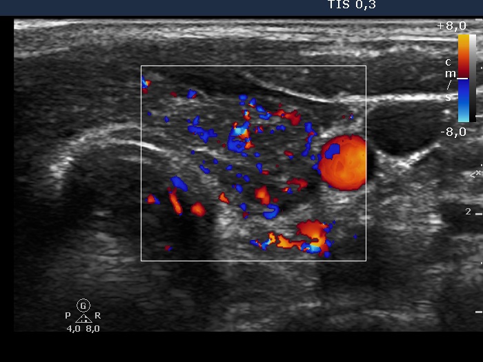 Ultrasonography: The thyroid was echonormal and contained small hypoechogenic areas. The vascularization was practically absent.