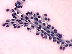 Comment. Although the recurrence of the breast cancer was very likely on the clinical and cytological data, a thyroidal origin could not be fully excluded. Note that the patient was disease free for 5 years and the only PET-positive finding was this lymph node far from the breast.