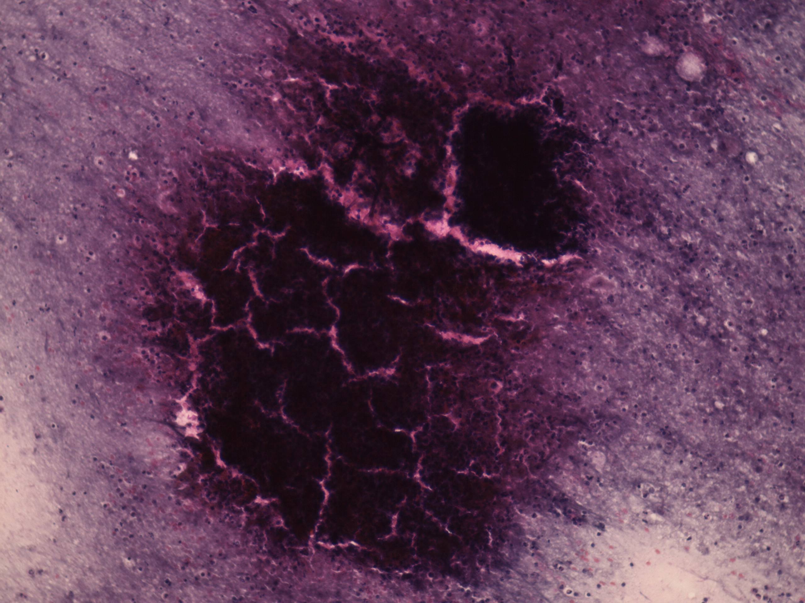 Pap-smear, 400x. Inflammatory cells in necrotic background.