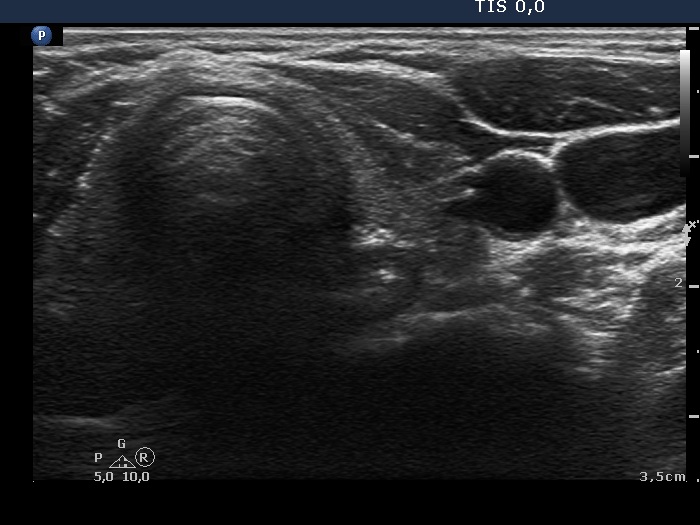Daily 75 microgram levothyroxine was given. We advised beside checking the TSH level, a follow-up ultrasound examination 2 years later.