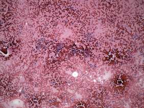 Although the possibility of an autoimmune thyroiditis could not be excluded on the ultrasound presentation, the normal anti-TPO level and the lack of lymphocytes on the smear stood against Hashimoto's thyroiditis.