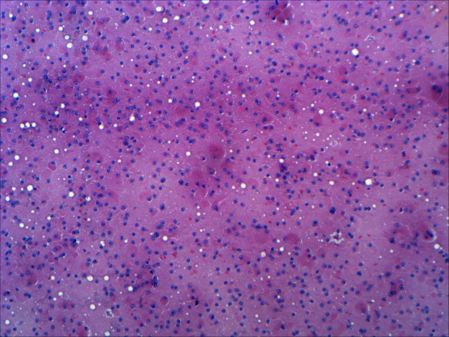 Pap-smear, 100x. This is an extremely cellular picture. Follicular cells are found dispersed.