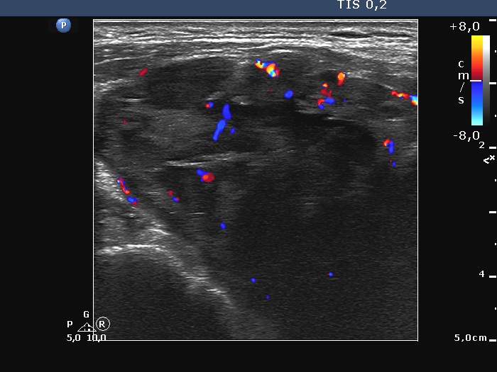 Functional state: TSH-level 0.04 mIU/L, FT4 12.9 pM/L, aTPO 6 U/mL.