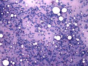 Cytology: suspicion of a small cell malignant tumor. Immunocytochemistry was not successful.