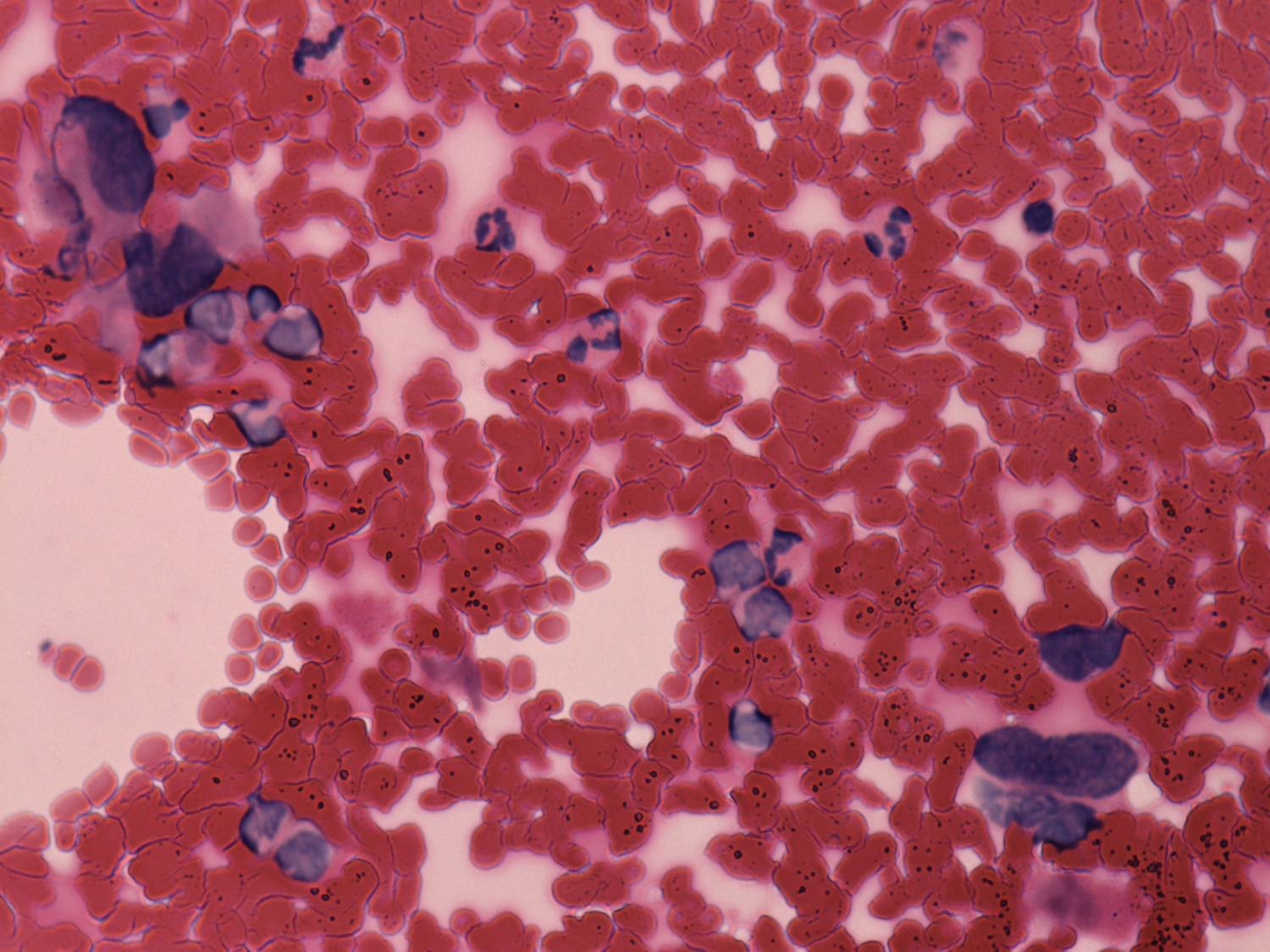 Pap-smear, 400x. Pleomorphic dissociated tumor cells.