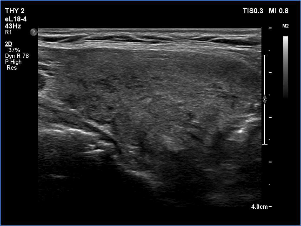 Clinical presentation: A 66-year-old woman was referred for cytology. The patient felt discomfort in her neck while lying on her left side for a few months.