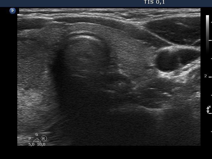 Clinical presentation: A 38-year-old woman was referred for aspiration cytology of a nodule which was discovered by the patient herself a few weeks ago.