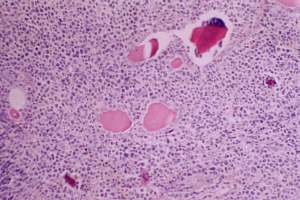 Biopsy was performed from the left thyroid and histopathology revealed MALT-type non Hodgkin lymphoma.