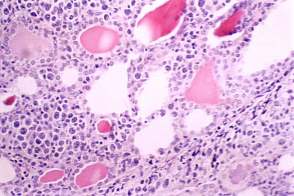 Clinical presentation: A 92-year-old woman has been treated for hypothyroidism for 3 years. Relatives noticed 6 months ago that the patient’s thyroid gland began to grow.. At the time of the investigation, the patient hasn't been able to swallow solid foods for 10 days.
