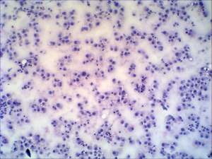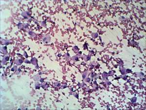 It is likely that the smear was gained from the more differentiated part of the tumor.