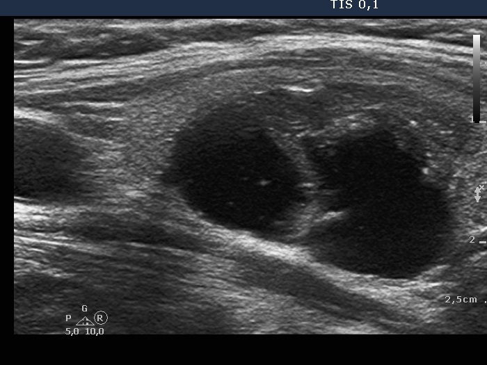 Three years after the initial examination (ultrasonographic picture 6)