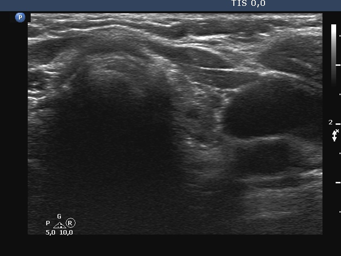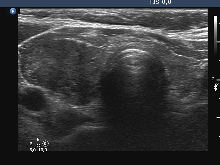 1. The issue was whether the lobe was composed of a large nodule or only diffuse enlargement was present. On some still images, it seemed evident that there was a nodule. But we should never forget, that the reality is much more represented by videos. When we stop the continuous scan significantly affects what we see in a still image, which can therefore very easily be misleading. In the video, I highlighted those features on which we could decide considering only the ultrasound presentation that this very likely a nodule.