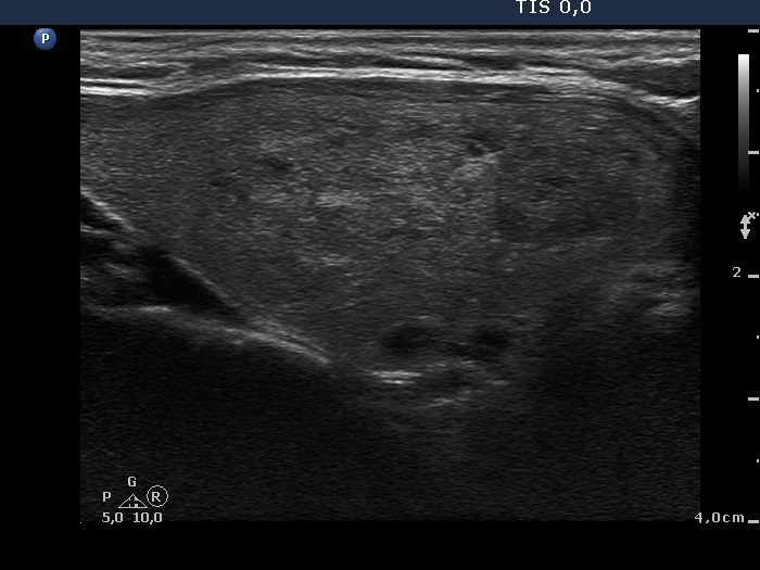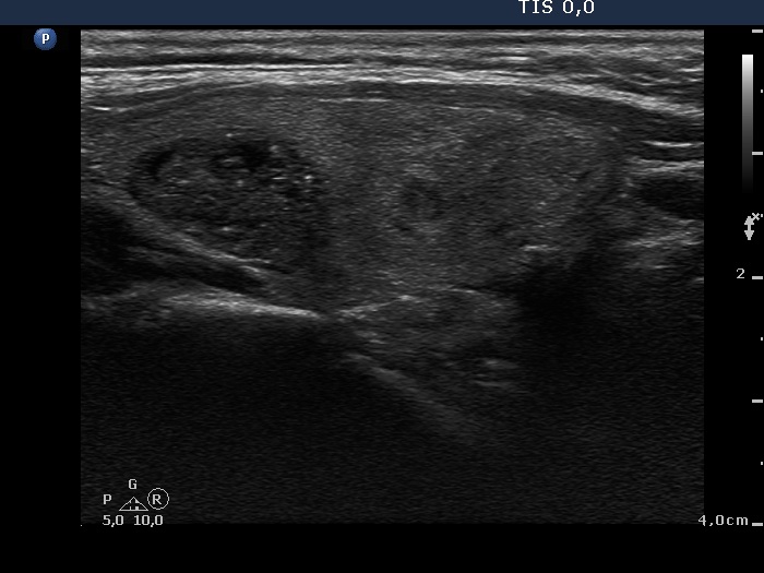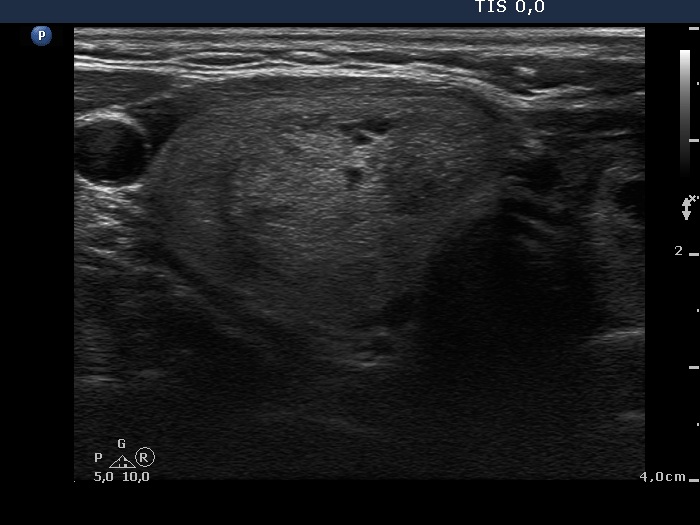 Palpation: a multinodular goiter without any nodule suspicious on palpation.