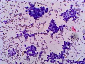 Clinical presentation: A 55-year-old woman presented with a rapidly increasing mass in the right thyroid lobe. She had difficulties in swallowing. The tumor evolved over 3 months.
