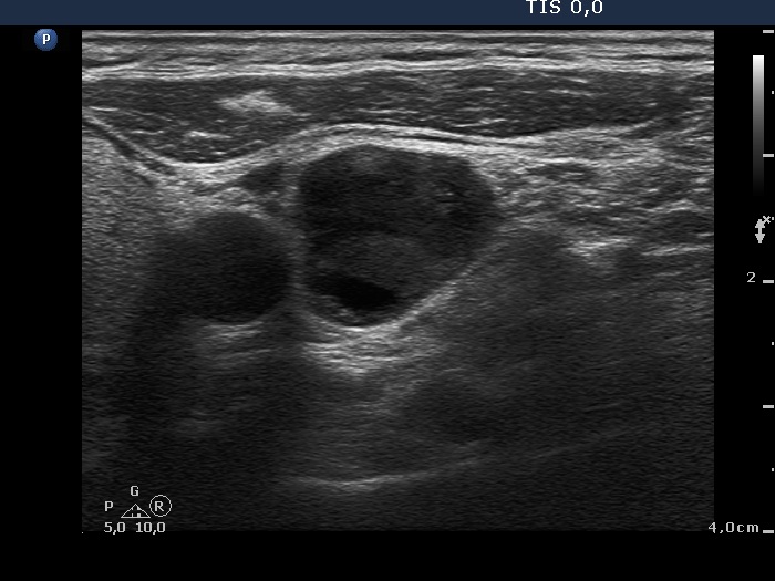 Left side of the neck, another transverse scan. There is another metastatic lymph node.