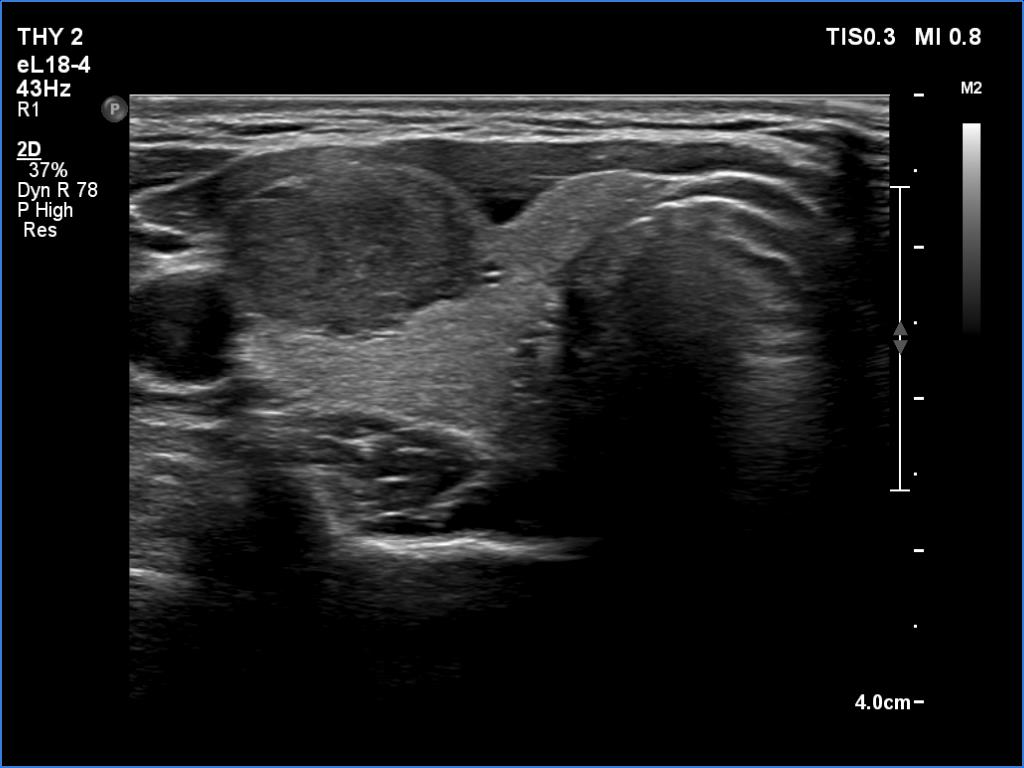 Cytology of the larger nodule resulted in papillary carcinoma.