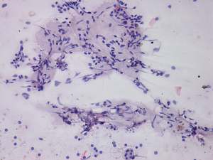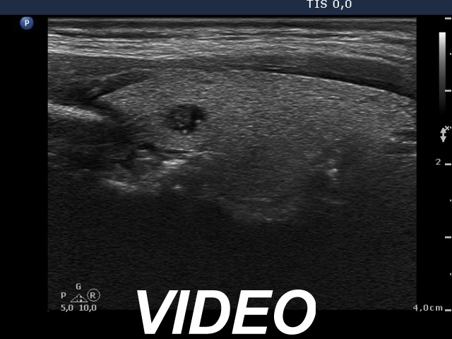 Aspiration cytology of the lesion resulted in benign lesion which might correspond either to a parathyroid adenoma or a benign thyroid lesion.
