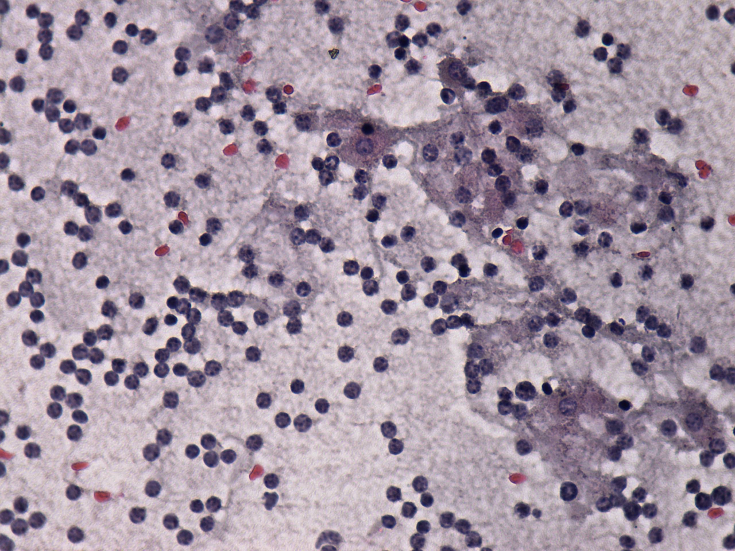 Pap-smear, 400x. A monomorphous pattern is demonstrated.