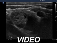 Palpation: a not firm lesion in the lower-lateral part of the right thyroid bed.