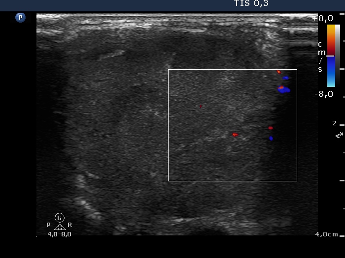 Functional state: euthyroidism (TSH 2.32 mIU/L, FT4 18.6 pM/L).