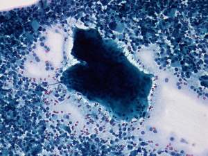 Cytological diagnosis: carcinoma. Probably medullary cancer.