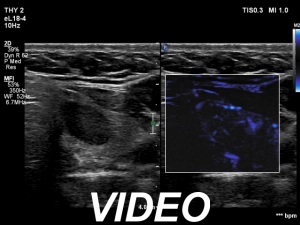 Clinical presentation: A 42-yr-old woman was referred for evaluation of a thyroid nodule discovered on PET-CT scan. The breast lesion was discovered by the patient herself. Further evaluation disclosed axillary node metastasis. Regarding possible distant metastases, the thyroid was the only positive finding on PET-CT scan.
