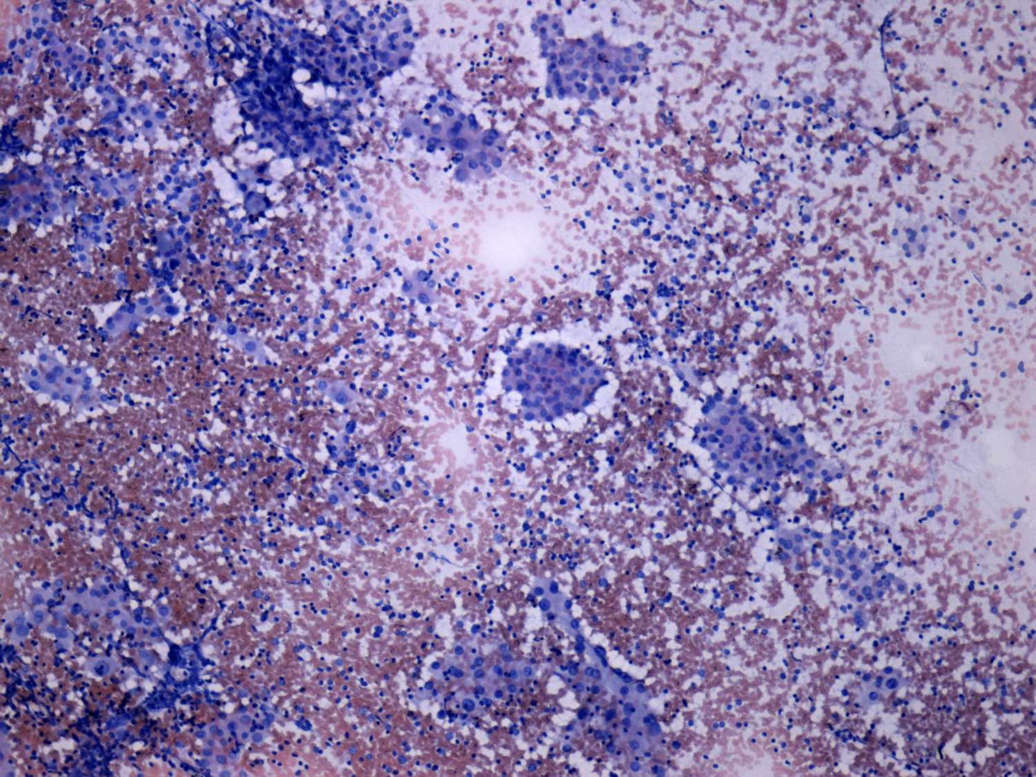 cytology. A great number of hypoechogenic lesions within an echonormal