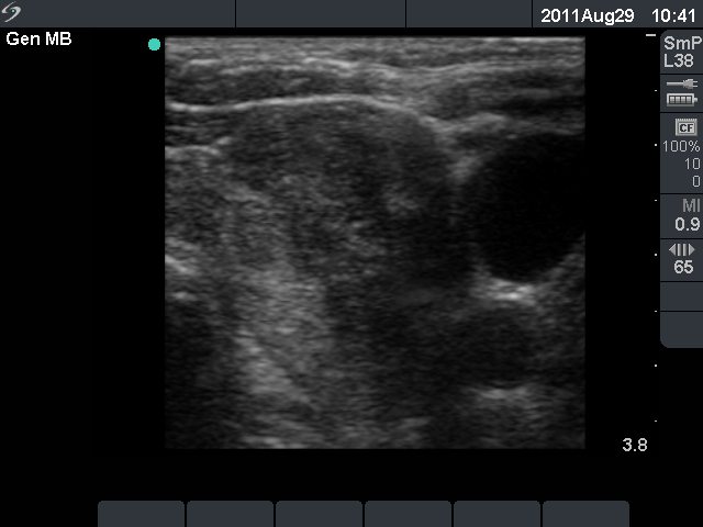 Characteristic ultrasound properties - blurred borders of the nodule