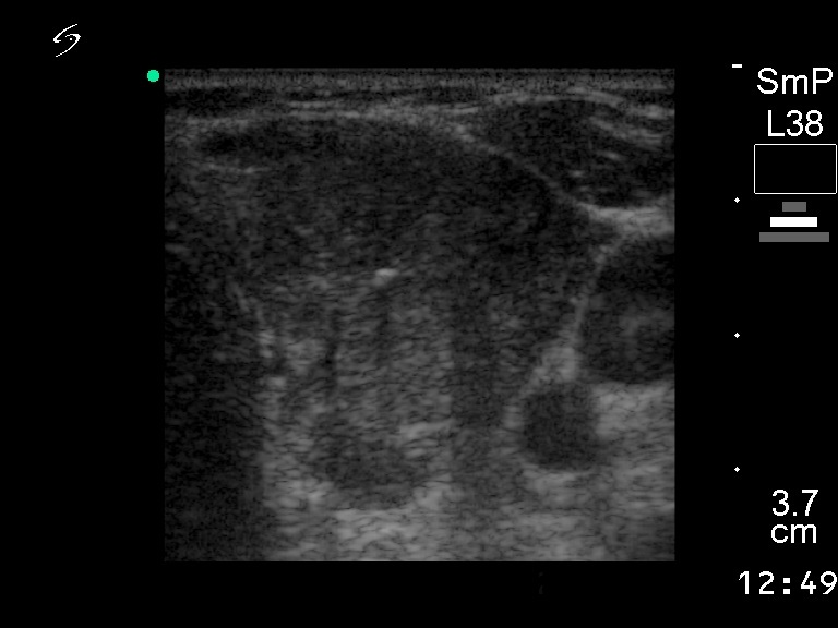 demonstrated above. In this Hashimoto patient, several hypoechogenic