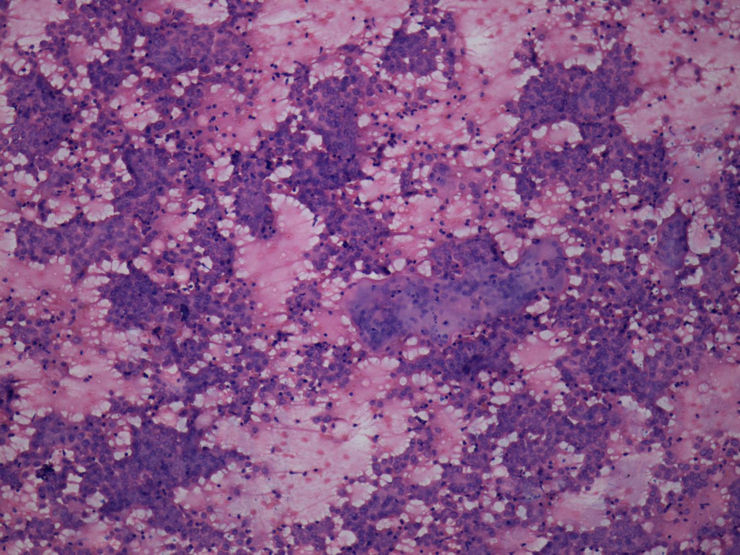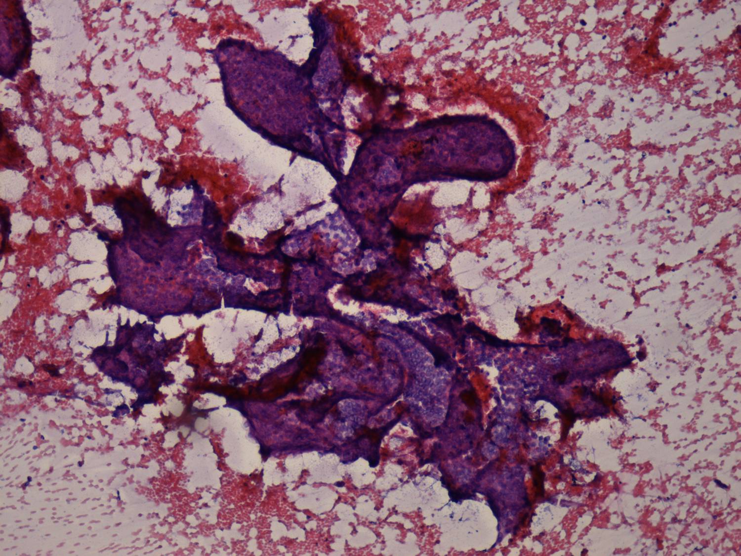 Papillary clusters are three-dimensional structures. They may be arborizing. In the case of a papillary carcinoma, the edge of these clusters are smooth. There is no or only limited tendency of cells to dissociate. Within the papillary groups nuclear crowding and overlapping can be observed. |