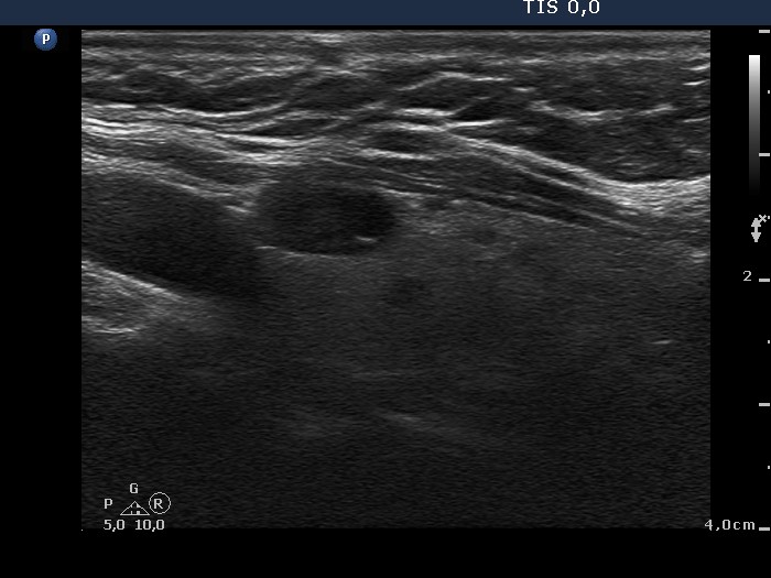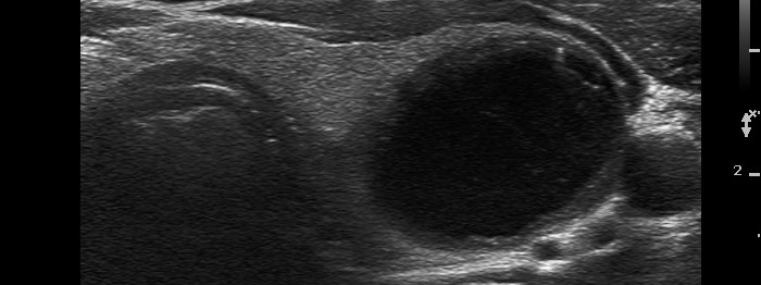 Before aspiration of 2 mL cystic fluid |