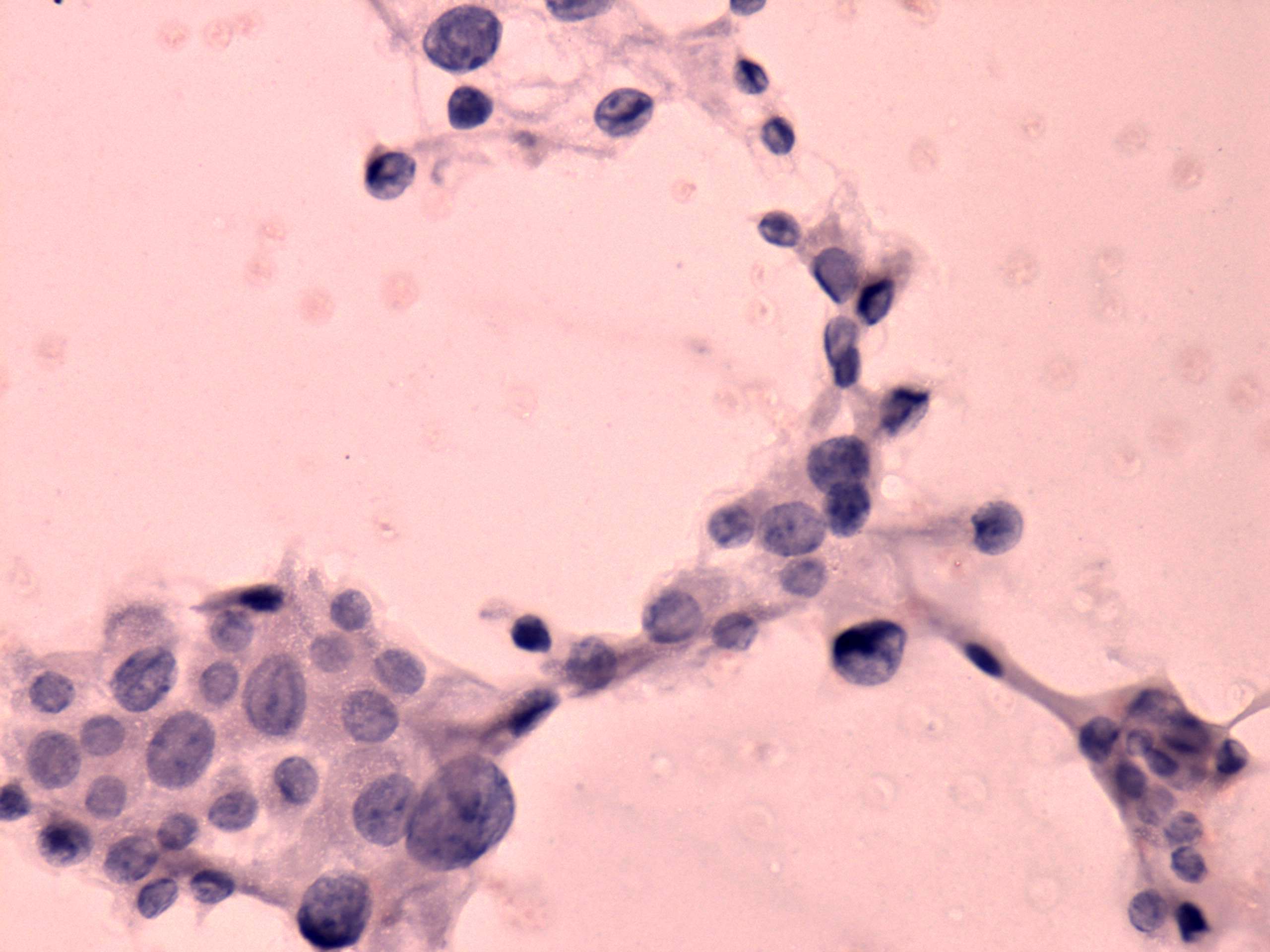 Pap-smear, 400x. Not extreme degree of anisonucelosis.