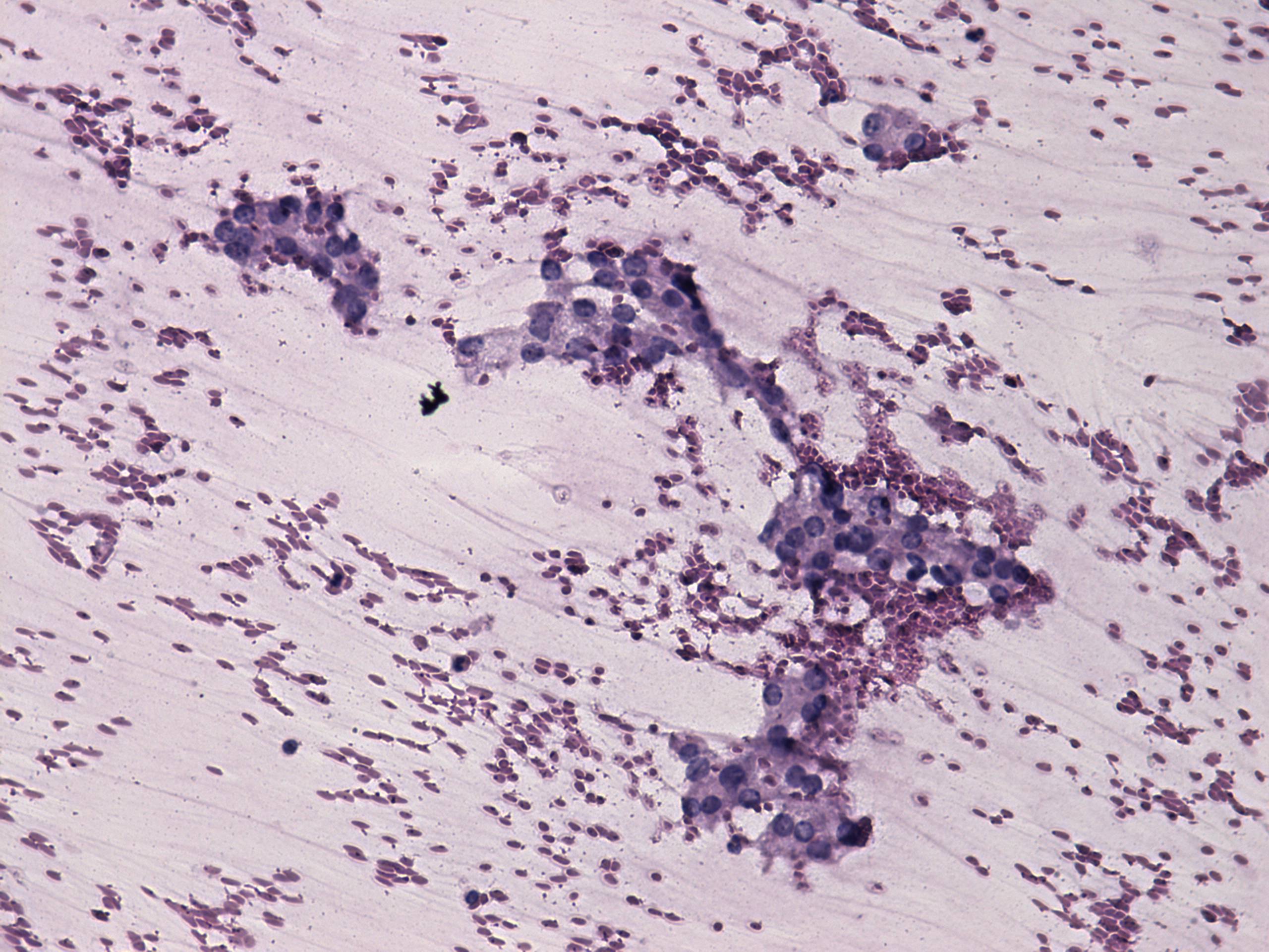 Pap-smear, 200x. Small clusters composed of microfolliculi.