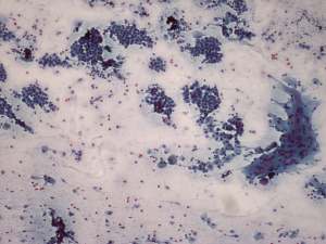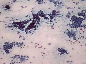 We have reviewed the original smears. The review of the smear indicated an error of gaining material because the original cytological diagnosis was correct.