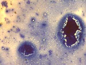 Ultrasonography: there was no parenchyma in the thyroid beds. Lateral to the right lobe there were several enlarged lymph nodes.