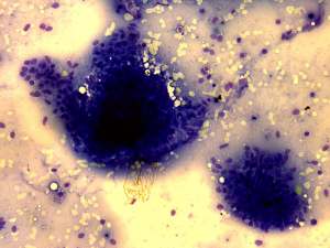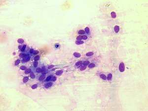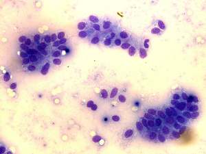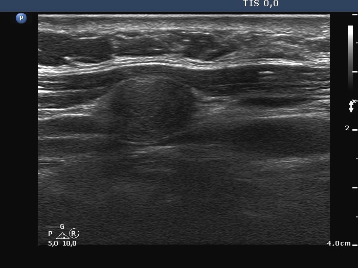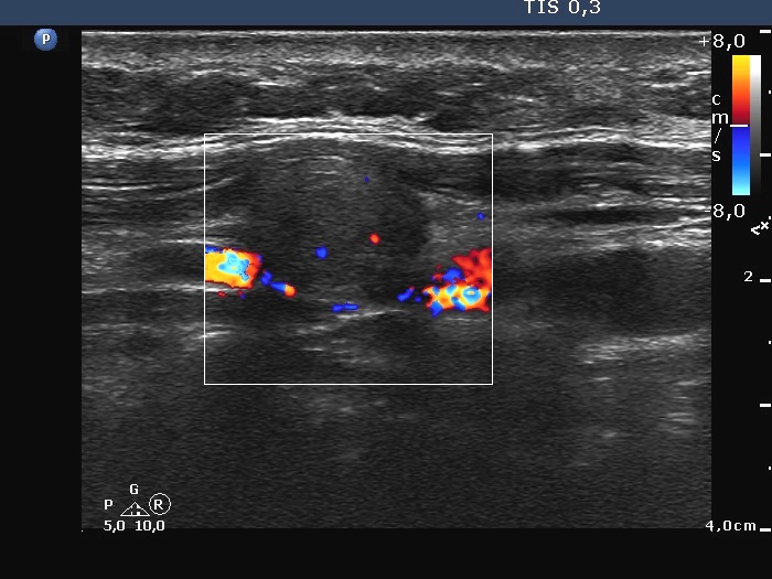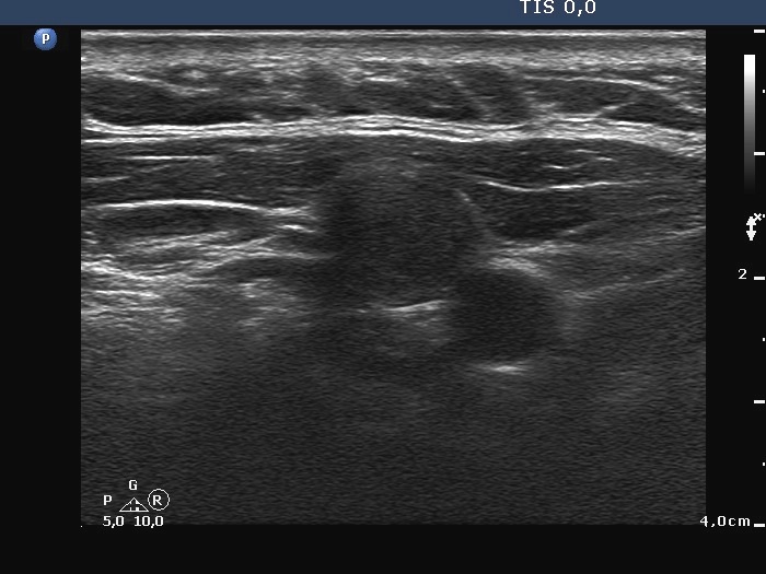 Clinical presentation. A 47-year-old woman requested a second opinion. She was operated on the suspicion of papillary carcinoma for 6 weeks in another institute. A total thyroidectomy was performed and final histopathology disclosed medullary carcinoma. She was told to have to undergo on regular follow-up examinations.