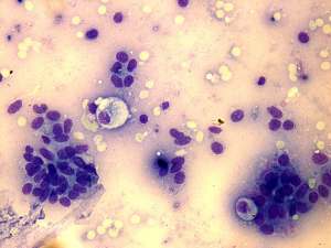The patient was reoperated. The lymph nodes of the neck were removed even in the medial compartment. Histopathology disclosed in two of them medullary cancer.