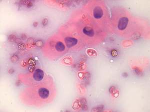 Cytological report: Hürthle-cell tumor.