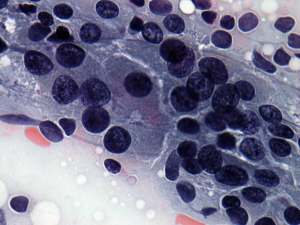 Cytological diagnosis: Hashimoto's thyroiditis.