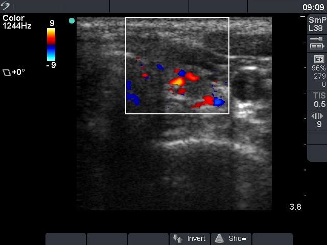 Palpation: both thyroids were moderately firm. There was no palpable nodule.