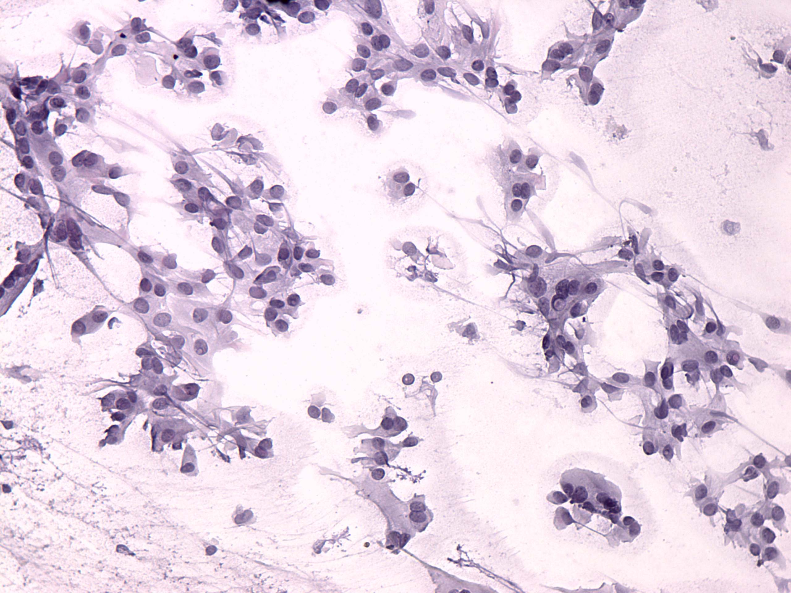 Pap-smear, 200x. Follicular cells exhibit oxyphilic metaplasia.