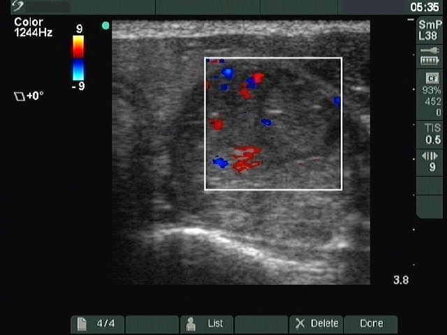 Ultrasonography: The left lobe contained a mixed nodule with increased intranodular blood flow.