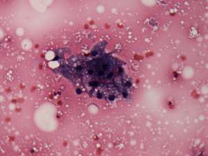 Cytological diagnosis: tumor with follicular structure.