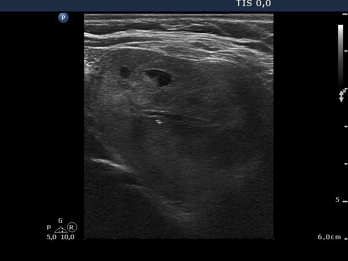 The correct interpretation of intranuclear holes is very important in this case. Otherwise, the possibility of a follicular variant of papillary cancer could be raised, because no sonographic signs of a capsule could be detected.
